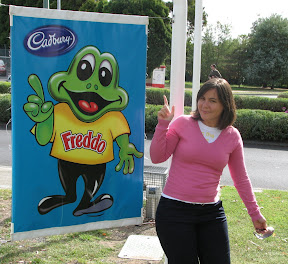 A la vuelta, casi sin querer acabamos en uno delos grandes iconos de Hobart, la destilería de Cascade. Al día siguiente por la mañana intentamos ver la otra gran fábrica de Hobart, la fábrica de chocolate de Cadbury, pero está cerrada. Aún así Celia se las arregla para hacer amigos.
