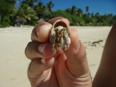 El primer bicho que nos llamó la atención lo vio, por supuesto, Celia al grito de ¡Mira, un caracol con patas! Y allí apareció el cangrejo ermitaño dentro de una concha.